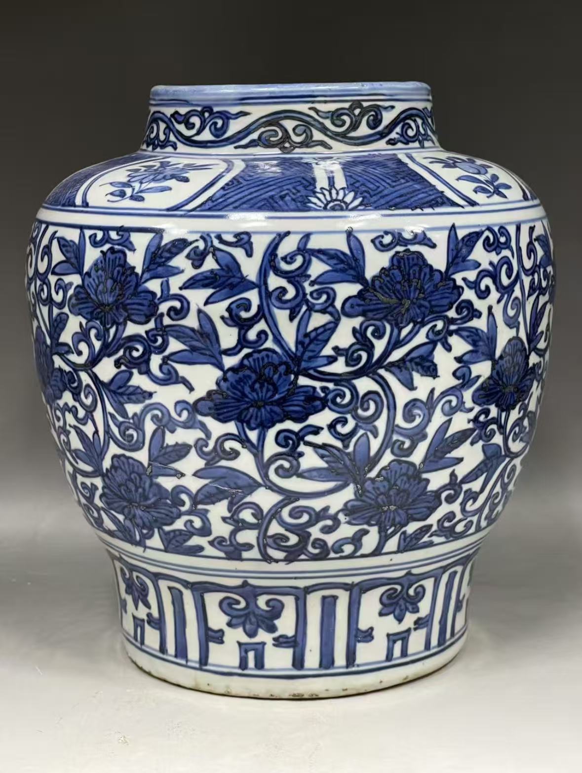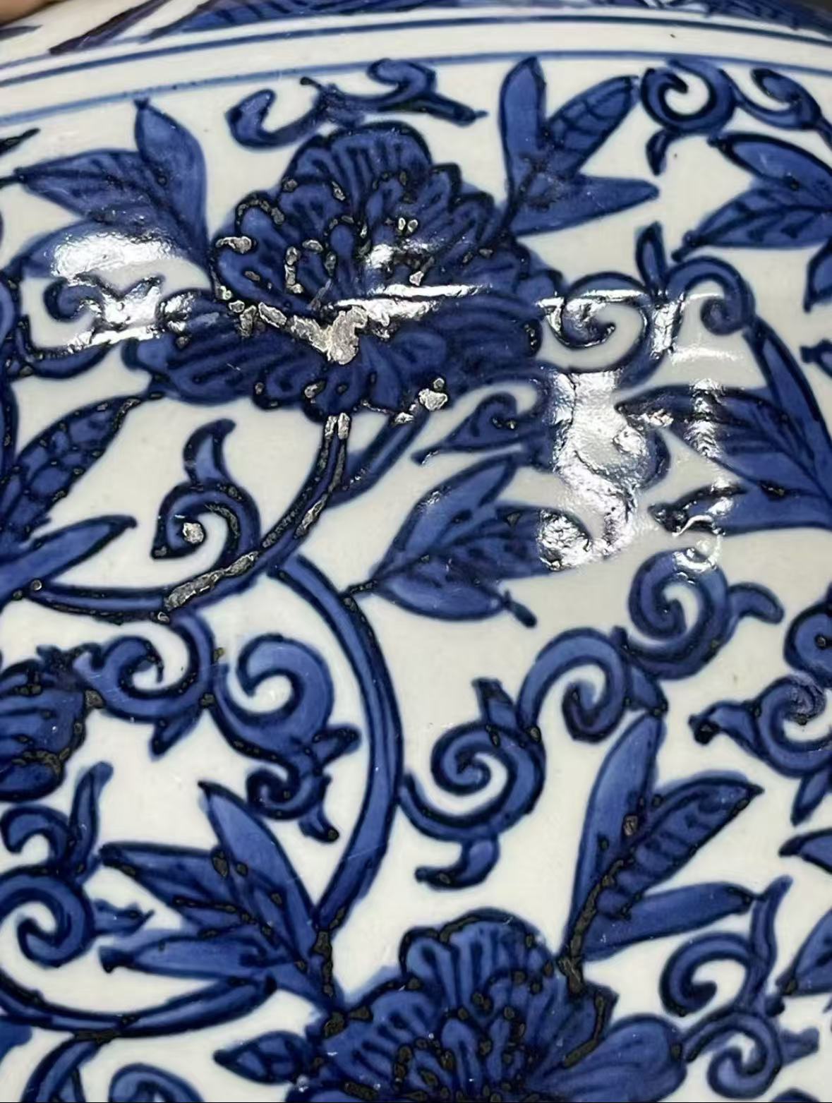 纹样从早期龙凤纹配如意云纹转向更生活化的婴戏纹、花卉纹,如“百子闹春”场景。宗教符号与世俗题材结合,如八卦云鹤纹与西洋罗盘共现。双勾线分水技法使青花层次丰富,淡描青花技法也在晚期发展成熟。