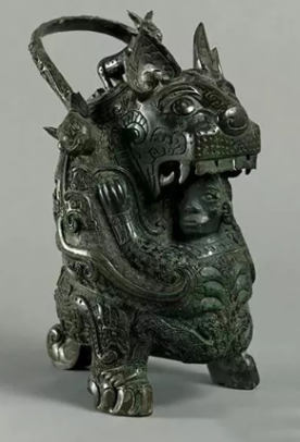 商虎食人卣是中国商代晚期的青铜器珍品,是商代的盛酒器,共有两件,相传出土于湖南省安化、宁乡交界处,后来都流入国外,一件藏于法国巴黎市立东方美术馆,一件藏于日本泉屋博物馆。其中以日本泉屋博物馆所藏较著名,通高35.7厘米,重5.09千克。卣作为一件礼器,它是贵族阶层的标志,商代以虎作为该器物的表面纹饰,是试图显示贵族权势的威严。