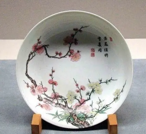 清雍正景德镇窑粉彩梅树纹盘