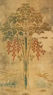 此屏风制作于8世纪中叶,据《东大寺献物帐》记载,为756年光明皇后献给东大寺的圣武天皇遗物。其纹样设计融合多元文化元素:鹿纹象征唐代宫廷的"天禄"祥瑞,牡丹纹源自波斯萨珊王朝织物图案,而卷草纹则受到印度佛教艺术影响。在奈良时期,此类屏风被用于分隔寺院的重要空间,《延喜式》记载其"设于御斋会座间,以别尊卑"。值得注意的是,屏风背面留有"吴州染物坊"墨书题记,证实其为江南地区官营作坊制品,通过遣唐使渠道传入日本。