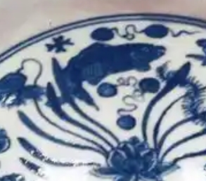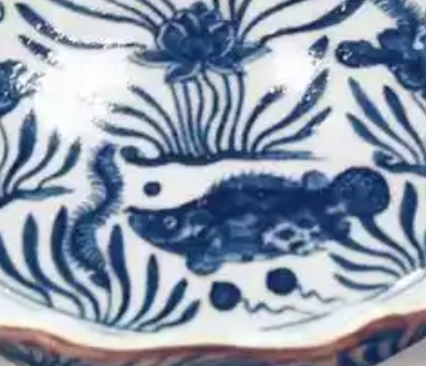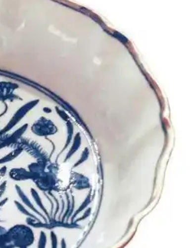 这是一件明宣德时期的青花笔洗,器型为花口,边缘呈优美的波浪状。笔洗中心以青花精心绘就鱼藻图,灵动的游鱼穿梭于舒展的水草、绽放的莲花间,画面鲜活生动,尽显自然意趣。从青花发色的沉稳与纹饰的细腻风格,可窥见明宣德青花瓷的典型艺术特征