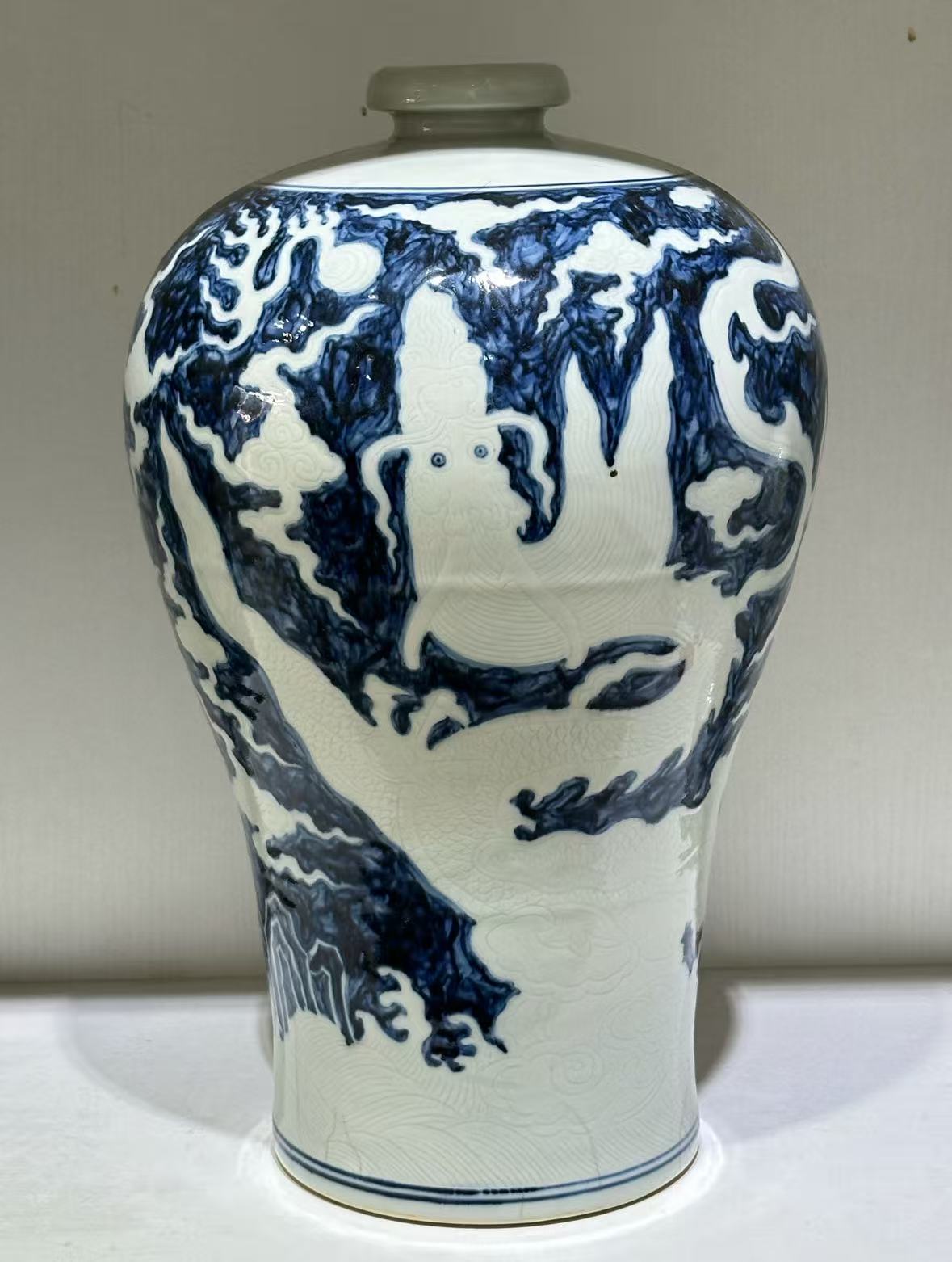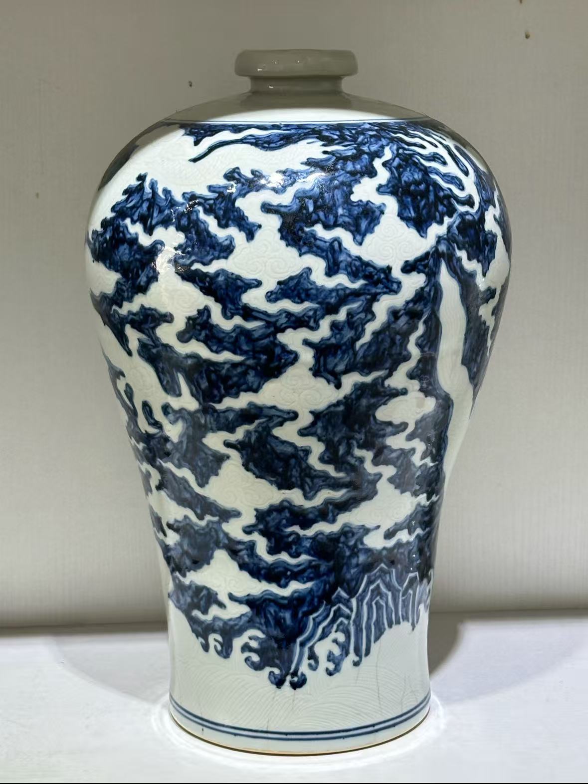 该梅瓶为永乐官窑作品,肩部以青花书写“内府”铭文,表明其宫廷用器身份,与北京首都博物馆、大阪市立东洋陶磁美术馆所藏同类铭文梅瓶风格一致