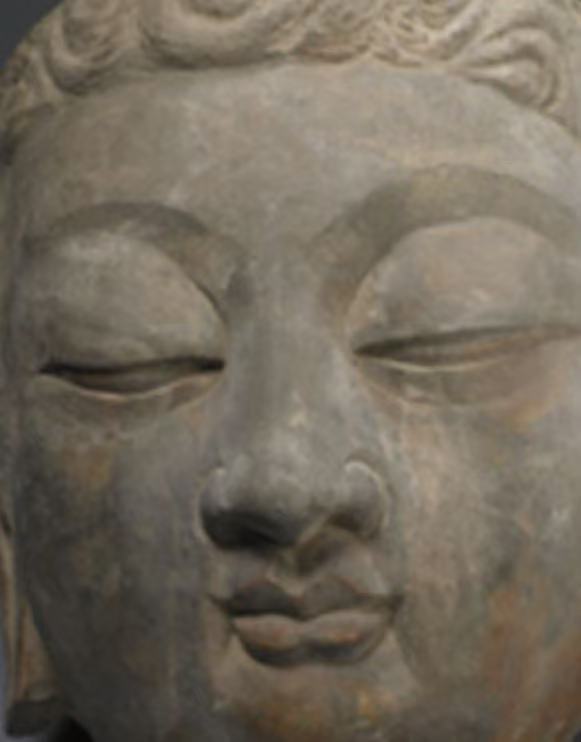 唐石彩绘佛像头传出自龙门石窟,其雕工技法细腻精准,人物神态刻画生动自然,展现了唐代佛教造像艺术的高度成就。佛像头采用圆雕技法,面部轮廓流畅柔和,眉目细长舒展,鼻梁挺直,唇部线条丰润饱满,耳垂呈典型唐代造像的夸张比例。发髻纹路细密规整,肉髻与螺发雕刻层次分明,雕工细腻准确,对人物神态的刻画把握得相当准确,为一件难得的唐代艺术佳品