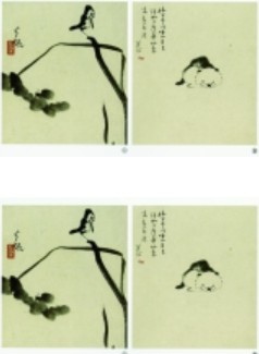 以狂草笔法入画,水墨淋漓,通过泼墨、破墨呈现花卉的湿润感与生命力,卷长超10米,墨色浓淡交织,形成“交响乐式”视觉节奏。打破四季时序,将牡丹、石榴、荷花、梧桐等13种花卉果蔬融为一体,首创“雪中芭蕉”时空错位构图,暗喻生命永恒。