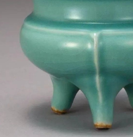 南宋官窑鼎炉以其仿青铜器的器型、粉青釉的发色和正烧品质而著称。尽管足部有残,但其釉色和器型仍体现了南宋官窑的典型特征。