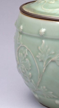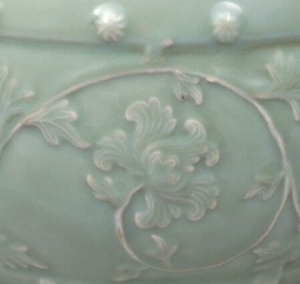 南宋龙泉窑青瓷贴花牡丹唐草文深钵