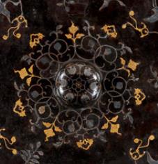 正仓院藏唐代漆背金银平脱八角镜(北仓42号)是8世纪盛唐宫廷工艺的典范。镜体呈八瓣葵花形,直径27.3厘米,青铜胎体表面包银边,镜背以黑漆为底,运用金银平脱技法镶嵌镂刻的金箔缠枝莲纹与银质凤鸟纹,纹饰最薄处仅0.2毫米。特别值得注意的是,花心处嵌有5颗切割成六边形的红琥珀,周围点缀绿松石与螺钿云纹,在光线折射下会产生虹彩效应。经现代X射线荧光检测,其漆层含唐代特有的桐油与朱砂混合物,而银箔纯度高达98.7%,远超同时期西亚银器水平。