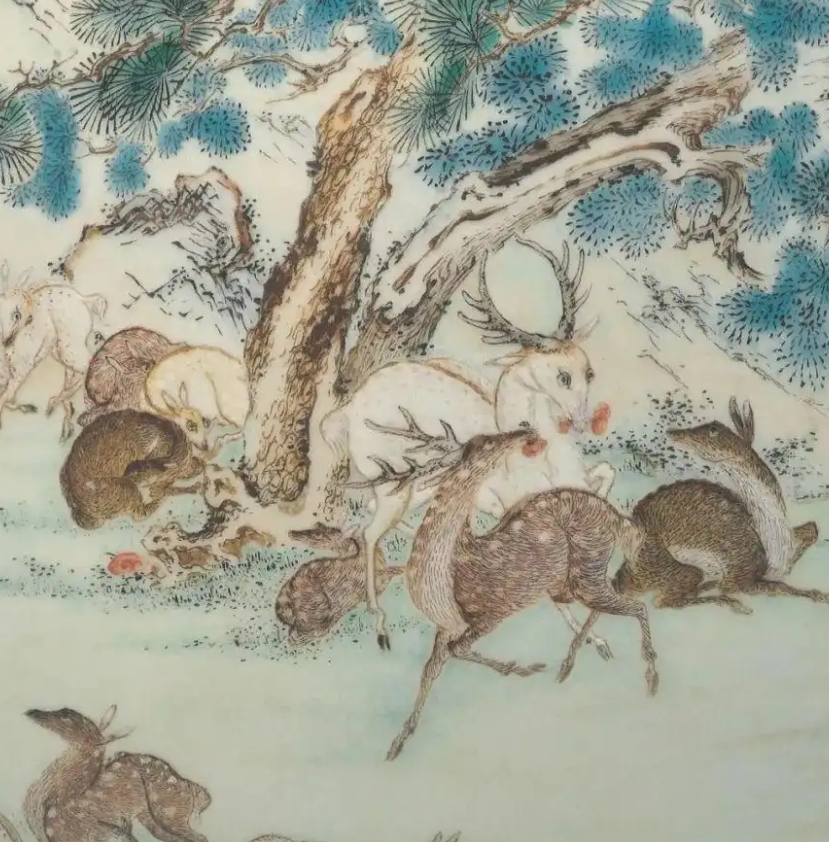 清代粉彩百鹿尊体现了当时制瓷工艺的最高水平,从拉坯成型到绘画装饰,每一个环节都精益求精。粉彩技法的运用使得纹饰色彩柔和、层次丰富,与独特的造型相得益彰,展示了清代工匠卓越的创造力和精湛的技艺 。