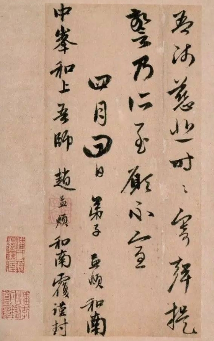 赵孟頫是元代著名书画家,诗书画印 “四绝”,其书法圆润遒劲,开创 “赵体”,对后世影响深远。中峰明本是元代高僧,为赵孟頫精神挚友,二人交往密切,多有书信往来。