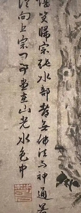 通过描绘智常禅师与张籍的论道场景,以及画幅左侧元末高僧楚石梵琦的题赞 “堪笑归宗张水部,都无佛法与神通。若论向上宗门事,尽在山光水色中”,很好地呈现出禅宗以心传心的义学机锋和空寂淡泊的审美旨趣,让观者从中领悟到禅宗的机缘与因缘。