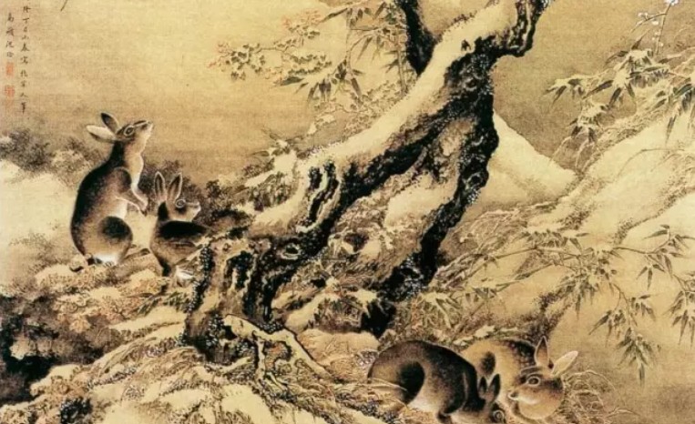雍正九年(1731年),沈铨应日本天皇邀请,携弟子郑培、高钧等东渡长崎,历时三年传授写生技法。期间《雪中游兔图》作为“南苹派”代表画作流入日本宫廷及贵族圈,被奉为“舶来画家第一”的典范