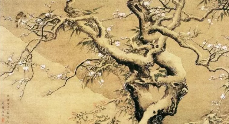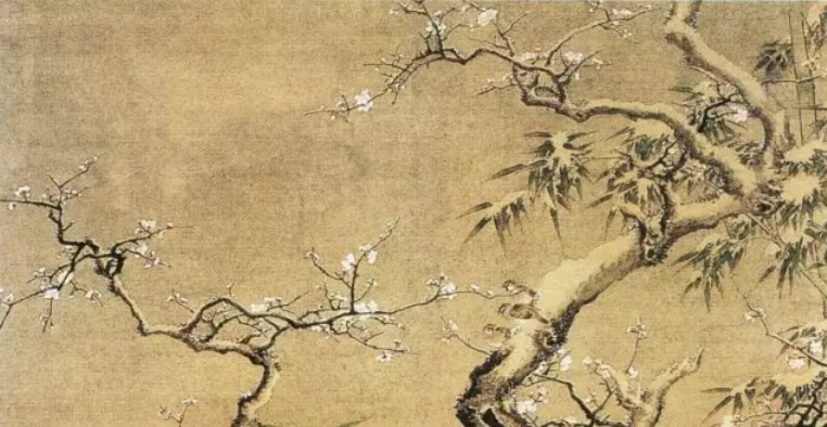《雪中游兔图》画两株老梅,梅花盛开,以白粉染出。树干以墨点染暗面,树后面竹一簇,梅树上下,兔雀相互呼应,生机盎然。天空涂以淡墨,以衬出茫茫白雪。此图与北宋崔白的写实手法有相似处,但沈铨在此画中很多地方不用线,而以明暗法代之,形成独特的“没骨”风格。应与他在日本的经历有关。
