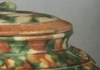 采用了唐三彩独特的低温铅釉工艺,在同一器物上,黄、绿、白等多种色彩相互交融、浸润,呈现出斑驳灿烂、绚丽多彩的艺术效果。同时,罐身上还运用了贴花装饰技法,贴花图案题材丰富,可能包括花卉纹(如牡丹纹 )、动物纹(如宝相花纹中的瑞兽 )等,这些贴花在釉色的映衬下,立体感十足,进一步增强了器物的装饰性和艺术感染力。