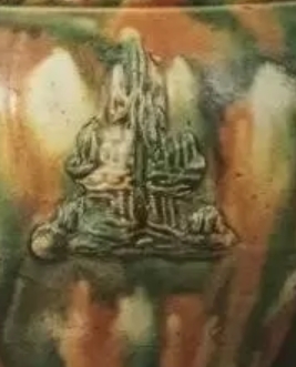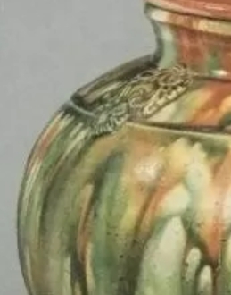 唐代三彩贴花三足罐