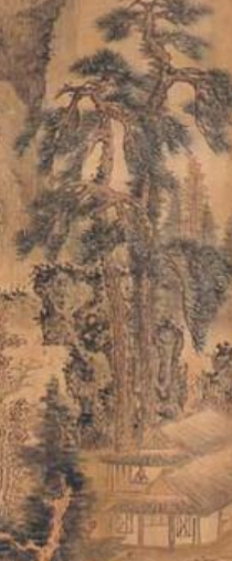 画面中巍峨的山峰高耸,山石用皴法表现质感,山间有挺拔的松树,还有小屋、溪流等景致 。整体营造出宁静悠远的氛围,体现了蓝瑛独特的笔墨风格,是明代晚期至清代初期山水画的典型代表,反映了当时文人对自然山水的审美追求。