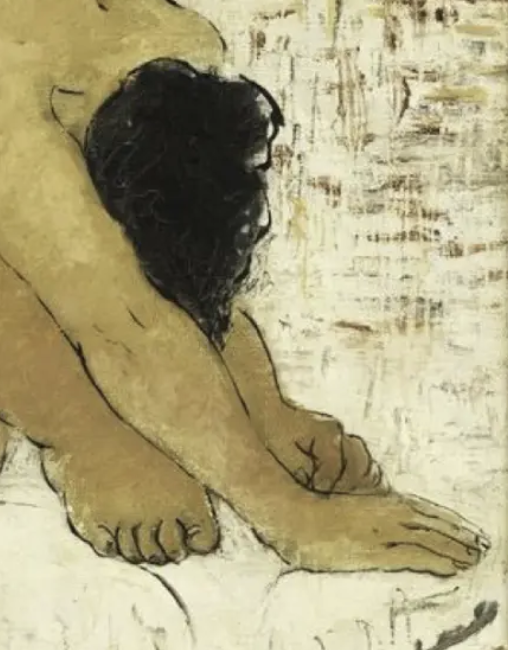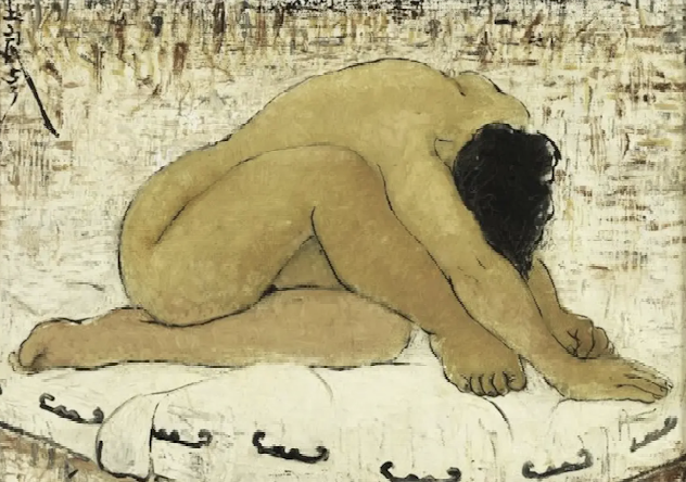 潘玉良的作品有《坐着的裸女》,1953年,布面油画潘玉良,《穿红色旗袍的裸女》,1955年,纸本水墨设色。两幅作品创作于几乎同一时期(1953和1955年),其中《穿红色旗袍的裸女》这幅水墨设色作品就能看到潘玉良长期油画创作实践的影响,而如果仔细观察1953年的那幅油画作品,又会发现画中女性身体的轮廓笔触其实是受到了白描手法的影响。两种技法间的相互影响和交流,正是艺术家在中法之间游历,从而进行艺术创作的完美体现。”