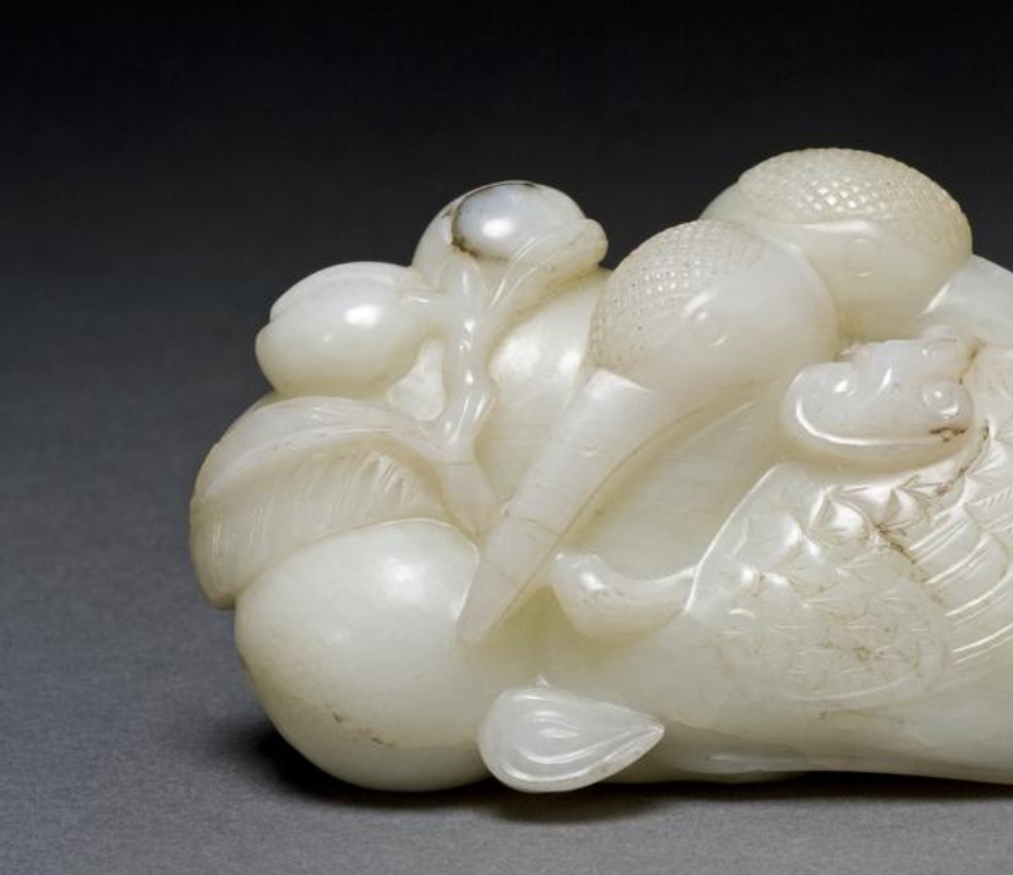 晚清时期,社会动荡但玉石雕刻工艺依旧延续发展。当时,和田玉备受推崇,玉雕匠人在传统题材上进行创作,童子、鹅等形象常被用于雕刻,寓意吉祥,比如童子戏鹅有喜庆、欢乐等美好寓意,鹅衔灵芝则象征长寿、吉祥,这类玉雕既满足民间祈福需求,也是达官贵人喜爱的把玩、陈设之物。