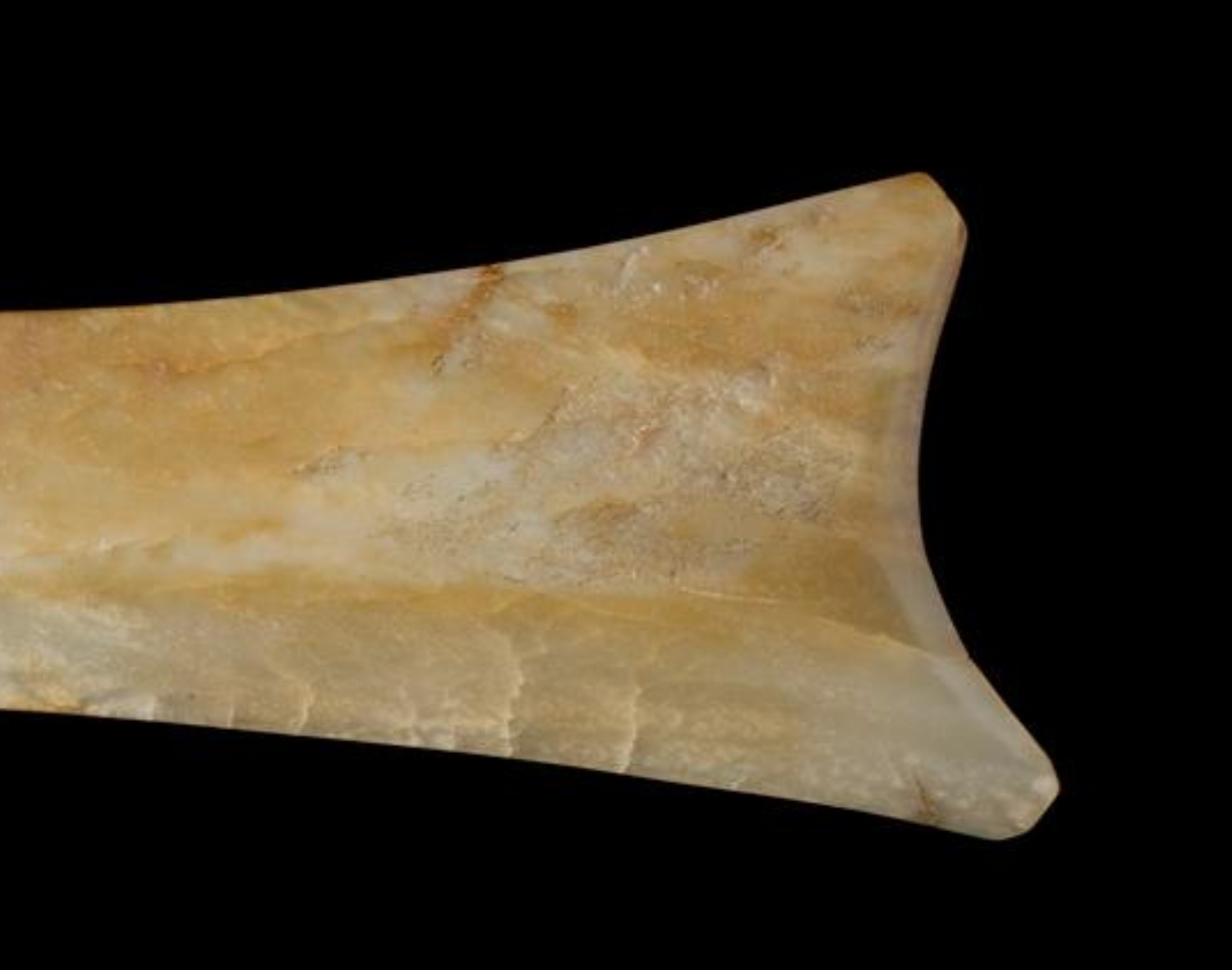 玉器在中国有着悠久的历史,从新石器时代开始,玉器就不仅是实用工具,更逐渐成为祭祀、礼仪、装饰等重要载体,象征着权力、地位与精神信仰。这件玉刃的形制与新石器时代至商周时期的玉刀、玉璋等礼器或工具存在相似性,这类器物可能用于祭祀仪式或军事仪仗,反映了当时社会对玉器的重视以及制玉工艺的发展水平。相关研究文献《不朽的石头 —— 从新石器时代到 20 世纪的中国玉器》也将其纳入古代玉器研究范畴,进一步印证了其历史价值。