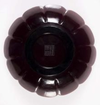 这是一件清代乾隆年间的紫晶玻璃盘,直径 19.5 厘米,高 5.4 厘米,现陈列于菲茨威廉博物馆亚洲艺术展厅(Gallery 28)。盘身采用紫色玻璃制成,质地厚重,底部经模压与切割工艺处理,呈现出花瓣状纹饰,盘底有 “乾隆年制” 款识,整体造型雅致,工艺精细,体现了清代宫廷玻璃器的制作水准。