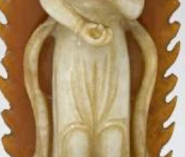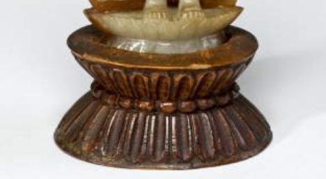该观音像制作于明末至清代(约 1600-1900 年),以玉为材质,采用雕刻工艺制成。观音是中国佛教艺术中的重要题材,明清时期玉质观音像常见,既反映了当时的宗教信仰,也展现了玉器雕刻在人物题材上的成熟技巧,对研究明末清初玉器的造型题材、宗教艺术表现及工艺特点有一定参考价值。
