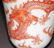 这是一件清代雍正年间的高足杯,为一对中的一件,直径 8.4 厘米,高 8.5 厘米,现处于存储状态。杯身采用硬质瓷制成,杯壁陡直,口沿外撇,下承高足。杯身以矾红釉上彩工艺装饰,绘有两条五爪龙在火焰中腾跃的图案,杯内无纹饰,整体色彩鲜明,龙纹造型矫健,尽显威严。