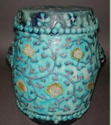 明代珐华彩瓷园凳