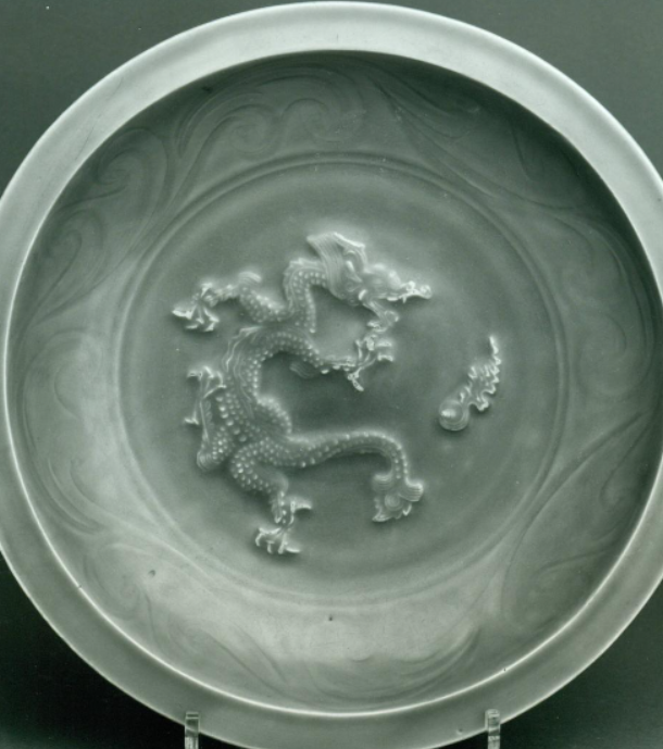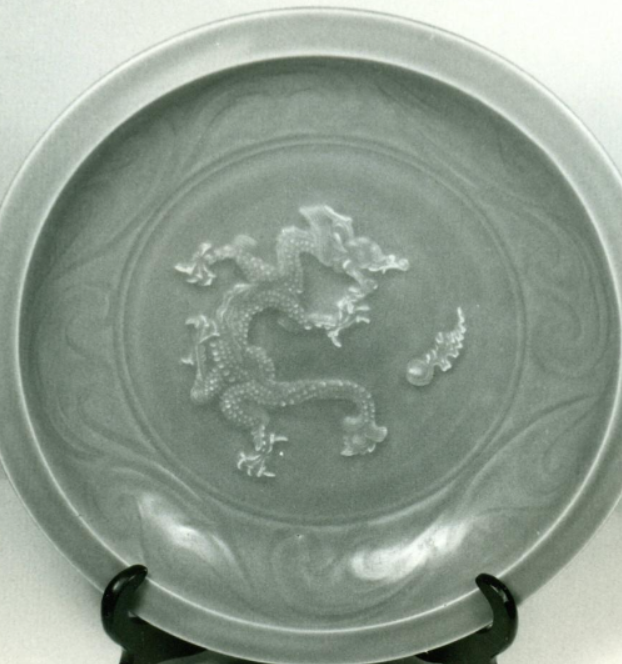 元代疆域辽阔,海上丝绸之路空前繁荣,龙泉窑成为外销瓷器的 “主力窑口”。为适应中东、东南亚采用 “露胎贴花” 工艺(花纹处不施釉,烧成后呈赭红色),纹饰融合中西方元素(如模仿波斯银器的缠枝纹、阿拉伯书法纹,或中国传统的云龙纹、八仙纹),形成 “中西合璧” 的独特风格。市场需求,龙泉烧盘发生显著变化。