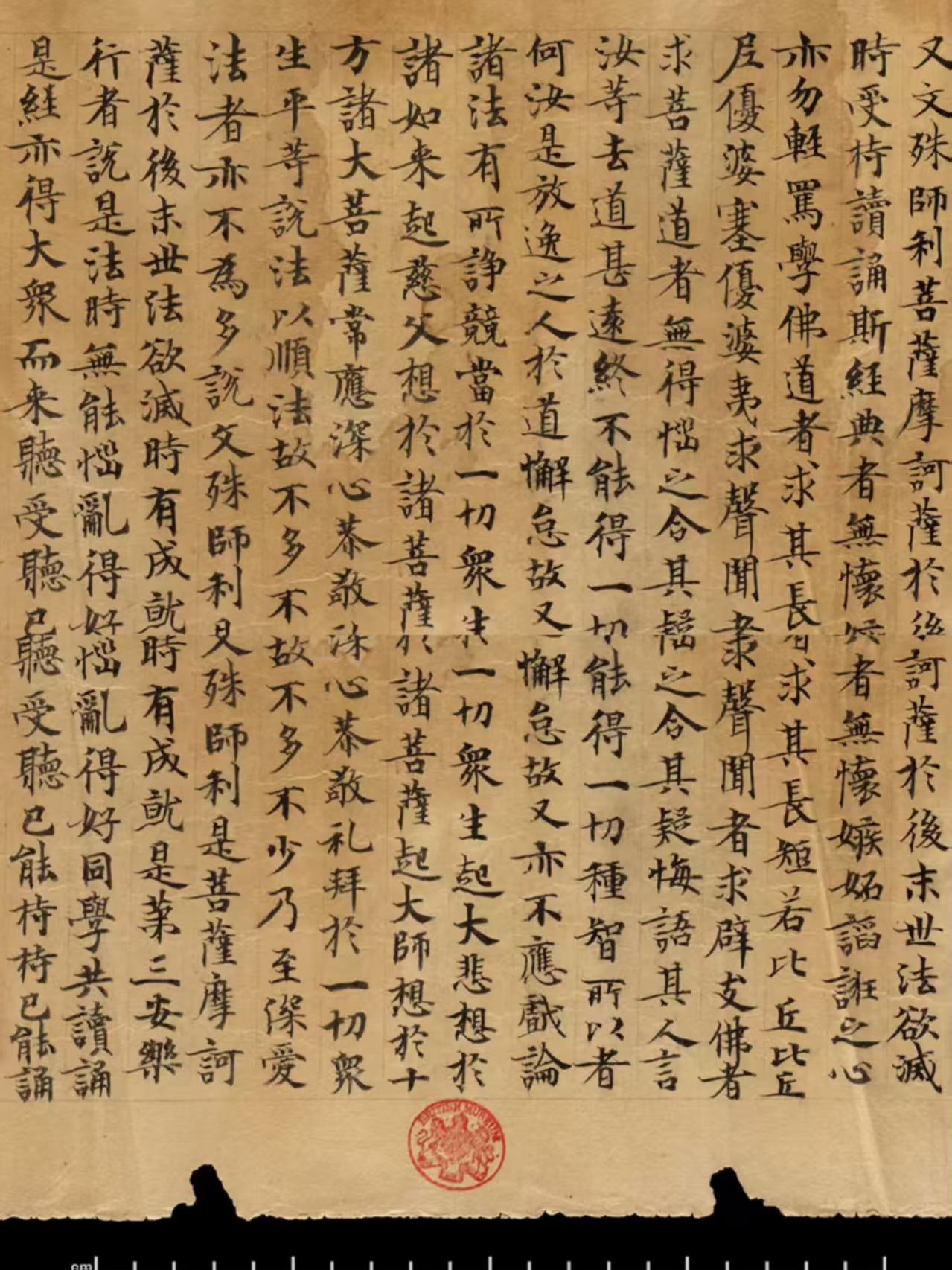 本段经文出自《妙法莲华经·从地踊出品》(第十五品)及《安乐行品》,属大乘佛教重要经典《法华经》核心内容。该经约成书于公元前1世纪至公元2世纪,汉译本以鸠摩罗什译七卷本最为通行