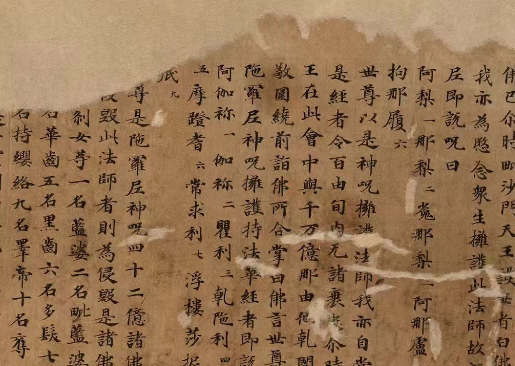 - 咒语(陀罗尼)被视为诸佛力量载体,本段含勇施咒(18句)、毗沙门咒(6句)、持国咒(19句)