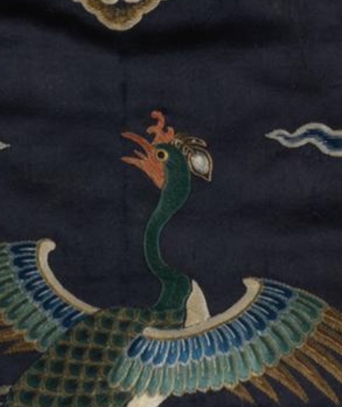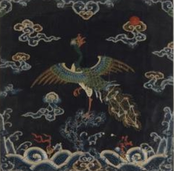 官补是清代官员官服上的标志性装饰,用于区分官员品级,孔雀纹是清代武官三品的象征(文官以禽鸟、武官以走兽区分品级,孔雀为武官三品标识)。18 世纪清代官补工艺成熟,刺绣技法多样,纹饰题材既体现等级制度,也融入吉祥寓意(如太阳象征皇权、山海纹象征江山永固)。这件官补对研究清代服饰制度、刺绣工艺、官员品级标识及社会等级文化具有重要参考价值,反映了清代官服制度与手工艺的紧密结合。