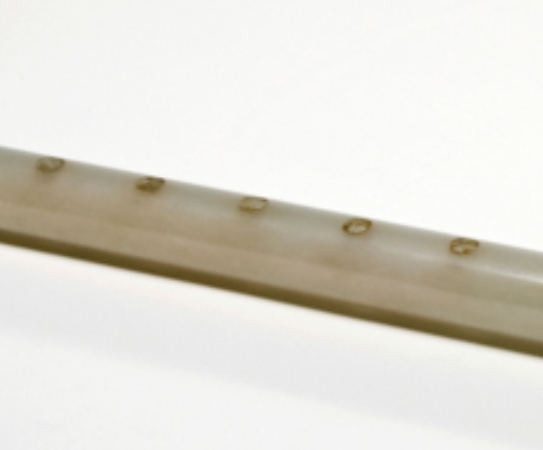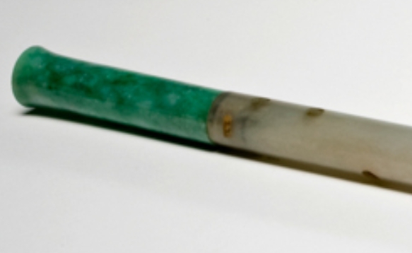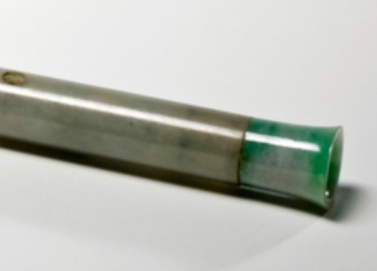 19 世纪清代玉器工艺成熟,玉质乐器因材质名贵、工艺精湛,成为宫廷与贵族的雅玩之物,既用于演奏,也象征身份与品位。这件玉笛的管状造型与音孔设计,符合传统笛子的声学原理,是清代玉雕技艺与音乐文化结合的典型代表,对研究清代玉雕工艺、古代玉乐器的形制及社会文化生活具有参考价值。