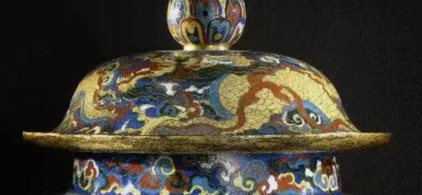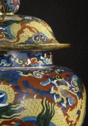 复杂的工艺、明艳的颜色、珍贵的材质,这些都注定了景泰蓝不平凡的出身。当初这种工艺几乎很难在民间见到,只有皇帝、贵族或身处宫廷的人才有机会见到、使用这种珍贵的艺术品。像这件龙纹盖罐就是当年宣德皇帝的御用之物,罐子上不仅有“宣德年制”的款记录了它的制造时间,还另外在颈部有“御用监造”四个字,说明这件罐子是专门为宣德皇帝制作的。