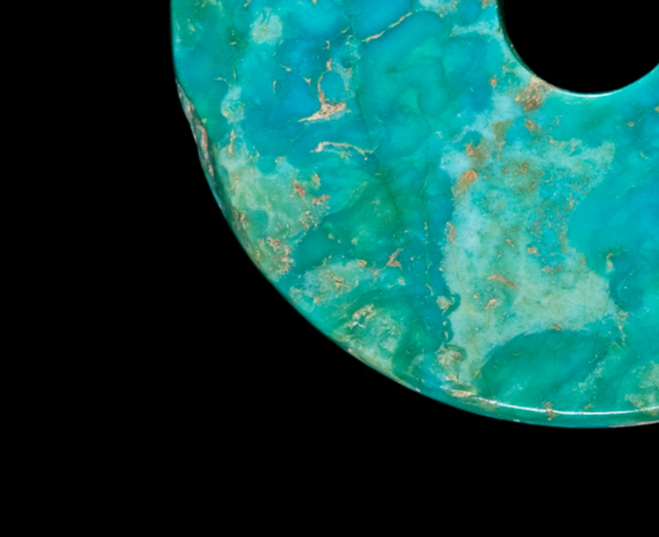 绿松石在古代常被用于制作饰品或兵器装饰,是重要的玉石材料之一。其 1941 年由奥斯卡・C. 拉斐尔(Oscar C. Raphael)遗赠,1946 年入藏菲茨威廉博物馆,入藏编号为 O.116-1946,拉斐尔编号为 123,现归该馆应用艺术部。流转轨迹反映了古代绿松石制品的海外收藏历史。