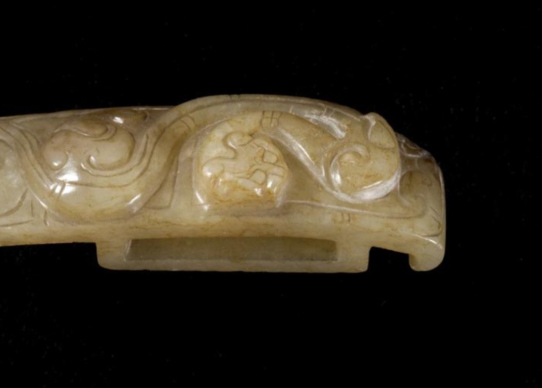 1500-1700 年的明清时期,玉器工艺高度发达,玉质配件常被用于装饰兵器,既彰显使用者身份地位,又赋予兵器吉祥寓意。螭龙是传统玉器中的经典纹饰,象征威严与力量,此类剑鞘饰的出现,反映了当时 “金玉结合” 的工艺传统与兵器装饰的审美取向,是研究明清兵器文化与玉器工艺融合的重要实物。