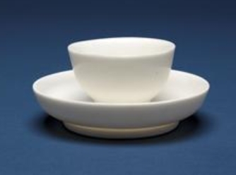 这是一套约 1690 年(清代)的德化白瓷杯碟,制作者不详,属中国风格的白瓷类别。德化白瓷以胎质细腻、釉色洁白温润闻名,推测此套杯碟延续这一特质,造型简洁雅致,可能无繁复纹饰,以纯净釉色和规整器形呈现美感。作为配套餐具,杯与碟功能互补,主要用于饮用时承托,兼具实用与陈设价值。