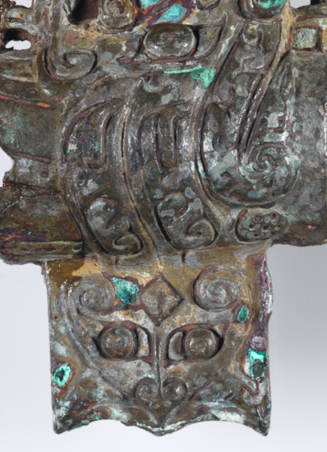 东周时期(公元前 770 - 前 256 年)是青铜工艺的转型期,兵器不仅是作战工具,更通过精美纹饰彰显使用者的身份地位。饕餮纹、龙纹等是当时青铜器的典型纹饰,象征权力与威严,这件青铜斧的纹饰布局与题材,反映了东周时期社会等级制度与审美取向,以及青铜铸造在兵器制造中的成熟应用。
