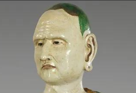 老年罗汉,面容沧桑却透着坚毅,双手自然交叠于腹前,袈裟的纹理仿若在诉说着岁月的故事,每一道褶皱都承载着历史的厚重;另一尊则目光深邃,微微颔首,似在沉思佛法要义,其身姿挺拔,三彩釉色在灯光下熠熠生辉