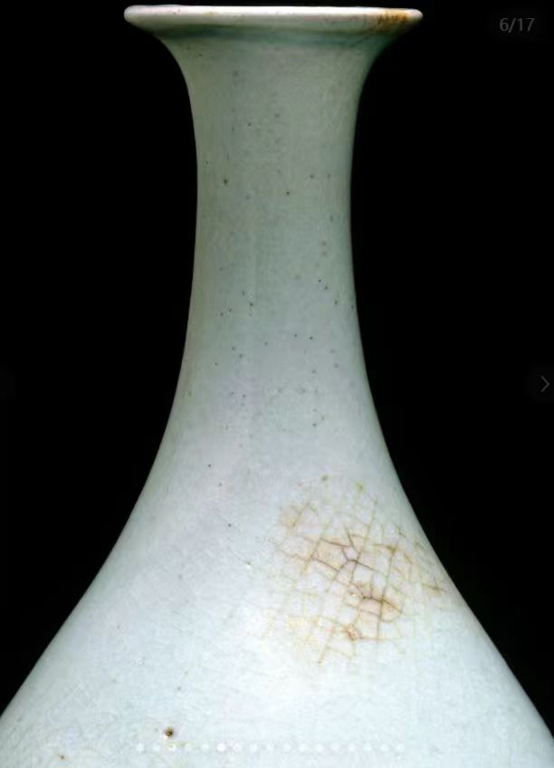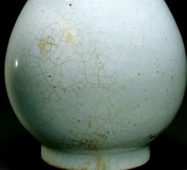 汝窑天青釉玉壶春瓶,现收藏在大英博物馆,高约20厘米,造型呈撇口、细颈、圆浮圈足,通体呈天青色,釉面布满细碎的纹片