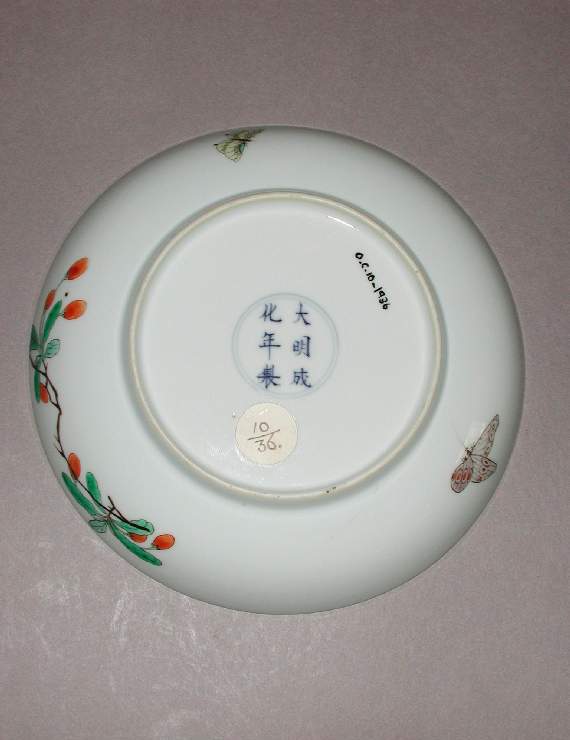 清代雍正时期,瓷器工艺趋向精细雅致,薄胎瓷(蛋壳瓷)因质地轻薄著称,彩绘风格转向淡雅柔和。蝴蝶与红果是当时常见的吉祥纹饰(蝴蝶象征美好,红果寓意丰收),这类瓷碟既为日用餐具,又因工艺精湛成为陈设品,反映了雍正时期瓷器 “精巧细腻”“淡雅清新” 的审美取向,以及制瓷业对薄胎成型与淡彩晕染技术的熟练掌握。