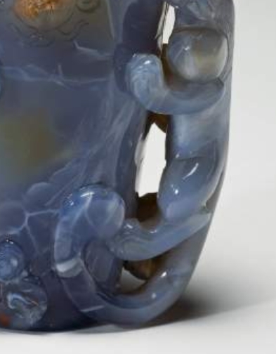 19 世纪的中国处于清代晚期,玉石雕刻工艺在继承传统的基础上持续发展,尤其注重对吉祥题材的表现。龙作为中国传统文化中的核心祥瑞符号,象征权力与尊贵,螭龙作为龙的变体,常被用于器物装饰,寓意吉祥辟邪。玉髓虽不及和田玉名贵,但因质地细腻、色泽柔和,成为民间与文人阶层喜爱的雕刻材料。这件玉髓瓶的高浮雕龙纹设计,既延续了历代玉石雕刻中 “以纹载意” 的传统,又反映了 19 世纪玉石工艺对细节刻画的追求 —— 通过立体雕刻让纹饰突破平面限制,增强器物的艺术表现力,同时也体现了当时社会对玉石陈设品的审美需求,是传统工艺与时代审美结合的产物。