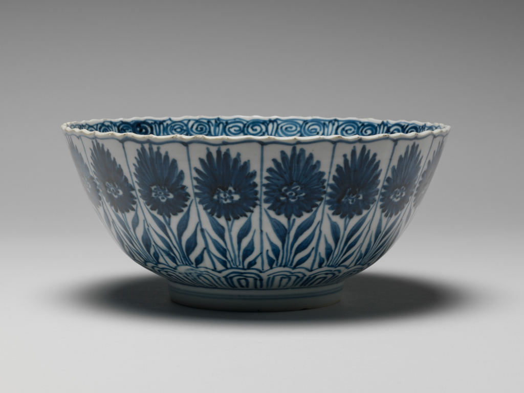 清代康熙时期是青花瓷发展的黄金时代,景德镇制瓷业在技术上取得重大突破,硬瓷烧制成熟,青花钴料(多为国产浙料)发色稳定,纹饰题材丰富多样。星纹作为一种简洁的几何纹饰,在清代早期青花瓷中较为常见,虽无明确吉祥寓意,但因其构图对称、绘制便捷,成为民间用瓷的常用装饰元素。这件青花碗的花瓣状造型与分区纹饰设计,反映了康熙时期瓷器造型从明代的古朴向精巧过渡的特点,同时也体现了当时民窑青花瓷 “注重实用、兼顾美观” 的生产理念。康熙年间,青花瓷不仅满足国内需求,还通过海外贸易大量外销,这类纹饰简洁的民用青花碗也可能随着贸易流向海外,成为中西文化交流的实物见证。