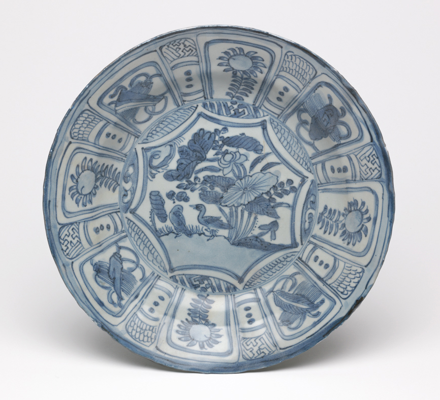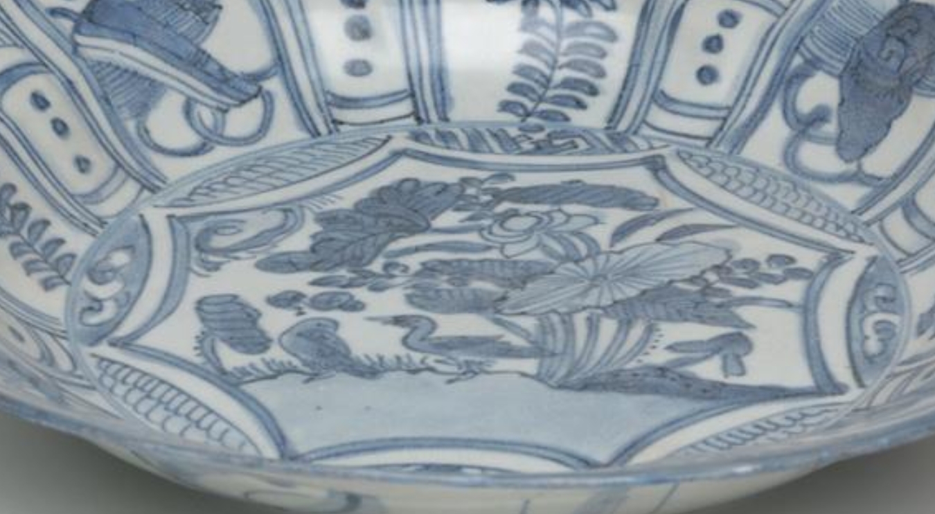 这件青花盘制作于明代万历年间(1573-1620 年)。万历时期的青花工艺成熟,钴料运用娴熟。此时景德镇官窑与民窑并行发展,硬瓷烧制技术成熟,釉下青花工艺已高度规范化。万历时期的青花以钴料为主要着色剂,色调常呈现浓淡层次分明的特征,纹饰线条流畅,体现了当时制瓷业的灵活性。