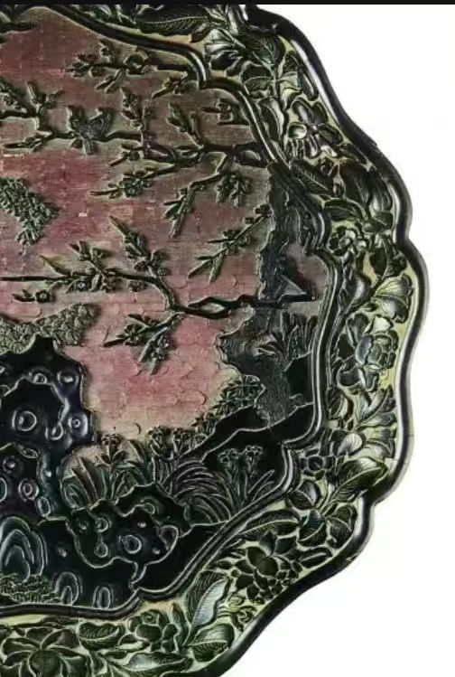 元代是剔黑工艺发展的鼎盛时期。元朝疆域辽阔,交通发达,促进了不同地区文化和技艺的交流融合。同时,手工业得到一定的发展空间,大量技艺精湛的工匠汇聚,为剔黑工艺的繁荣提供了人力支持。在元代,剔黑漆器的制作技术达到了很高的水平,工匠们能够熟练掌握漆层的厚度、髹涂次数以及雕刻的深度和技巧,制作出的剔黑花鸟图半式盘等器物,图案精美、线条流畅,展现出高超的工艺水准。作为雕漆技法中的一种,剔黑又称雕黑漆,是通体髹黑漆的一种雕漆工艺。它采用了黑漆堆积,然后剔刻花纹的做法,并分为纯黑剔黑、朱地剔黑、朱锦地剔黑,以及黄地剔黑、黄锦地剔黑和绿地剔黑、绿锦地剔黑等多种。而雕漆又分为漆后雕、雕后漆两类,属一种高浮雕的花纹形态,其中剔黑属于漆后雕。这类剔黑漆器在元代主要用于日常生活中的饮食、陈设或作为礼品赠送。在一些富贵人家的日常生活中,剔黑花鸟图半式盘可用于盛放食物、果品等;同时,因其精美的工艺和艺术价值,也可作为室内陈设品,起到装饰家居环境的作用 。在社交礼仪方面,精美的剔黑漆器还可作为礼品,用于贵族之间、文人之间的交往,彰显身份和品味。