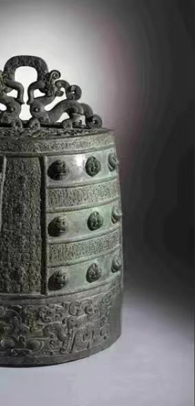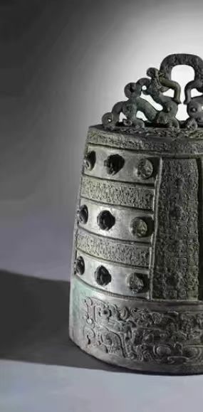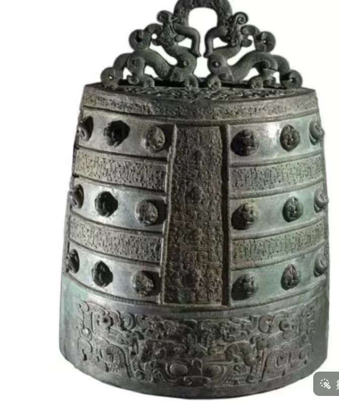 中国青铜钟 来自中国,东周时期,约公元前6-5世纪。钟上的所有窄边都是用相同的蟠龙纹