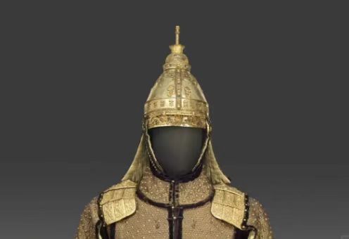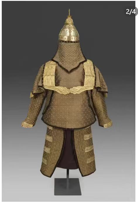 锥形的头盔(胄)是在十三世纪蒙古统治下传入中国。头盔边缘的文字是兰札文在中国的变体,被藏传佛教用来书写梵文并常用来装饰藏地武器。