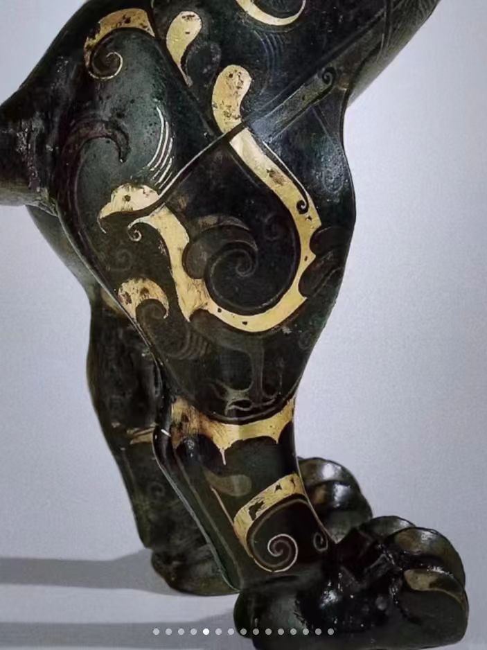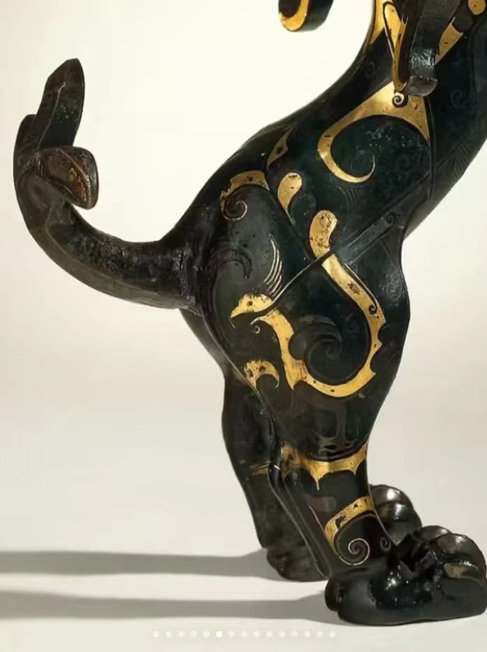 青铜器制作的工艺发展了一千多年之后至春秋中晚期兴盛起来汉代是我国错金银工艺的鼎盛时期这一件铜翼虎体积不大,应为一件席镇