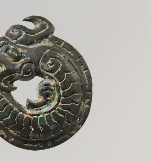 商代是中国青铜文明的鼎盛时期,除大型礼器外,小型青铜配饰的制作也极为考究。龙在商代文化中具有神秘色彩,与祭祀、神灵崇拜相关,常作为器物造型或纹饰主题。此龙形配饰产自公元前 13 至 11 世纪的商代晚期,反映了当时对龙图腾的尊崇以及青铜工艺在装饰领域的应用,为研究商代社会的宗教信仰、审美取向及手工业水平提供了实物依据。