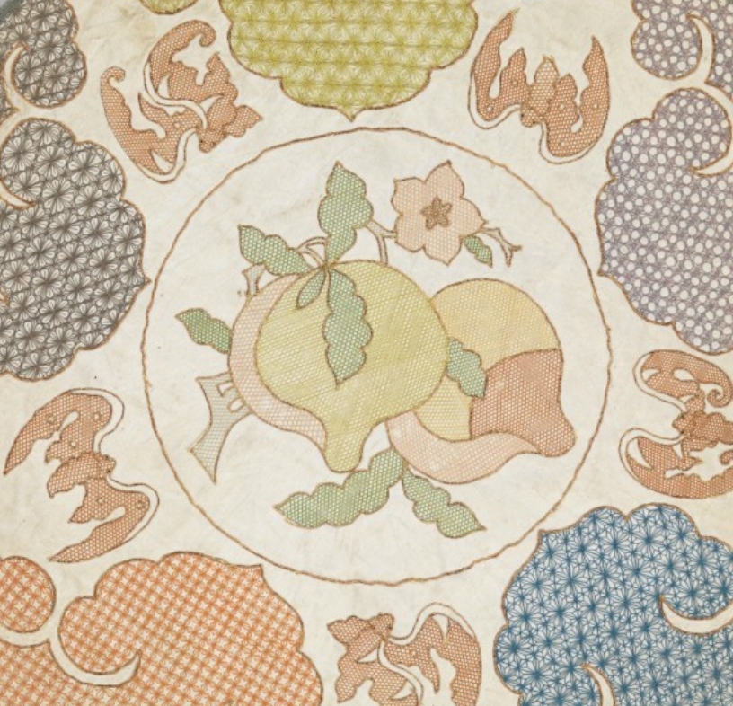 此镜囊以丝绸纱布为底,采用丝绸和金属线刺绣工艺制成,整体尺寸为 41.9×41.9 厘米。纹饰主题为婴戏图,展现男孩玩耍的场景,刺绣针脚细密,金属线的运用可能使图案更具光泽感,既具备保护镜子的实用功能,又通过生动的婴戏题材增添了装饰性与生活气息,体现了清代刺绣工艺在日用器物上的精致应用。