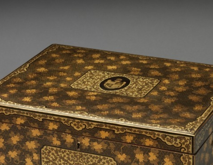 18 世纪末,中国与西方的贸易往来频繁,纹章图案便是典型的定制元素之一。亚历山大・汉密尔顿作为美国开国元勋,其家族徽章出现在中国漆器上,反映了当时中西文化交流中工艺品的定制化趋势,以及中国漆器工艺对外来文化元素的融合能力。此盒的工艺与纹饰,为研究清代定制模式及中西贸易背景提供了实物依据。