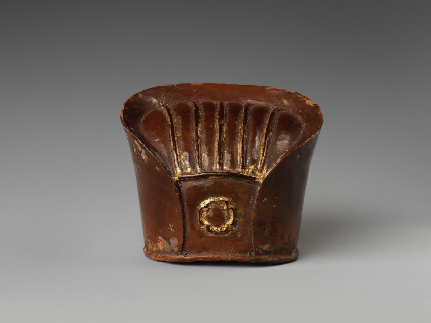 宋代手工业发达,漆器工艺在日用器物中广泛应用,镀金等装饰手法的融入提升了器物的精致度。发冠作为古代重要的头部配饰,不仅是束发工具,更承载着礼仪与身份象征意义,此漆木发冠的材质与造型,反映了当时社会对服饰配饰工艺与审美的追求,为研究宋代漆器的实用化应用及服饰文化提供了实物依据。